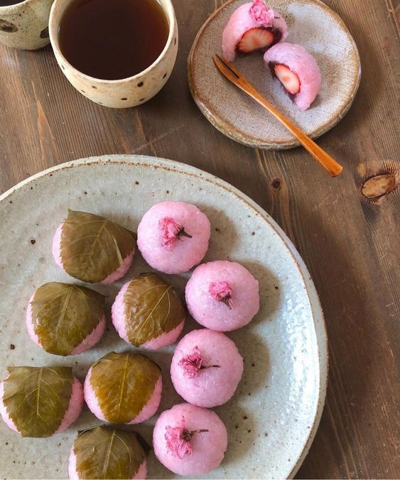 Sakura mochi is a traditional Japanese sweet made of glutinous rice cake filled with sweet red bean paste and wrapped in a salted cherry blossom leaf. The pink color of the rice cake is derived from the cherry blossom petals used to flavor it. Sakura mochi has a delicate, floral flavor and a soft, chewy texture. It is often enjoyed during the spring season when the cherry blossoms are in bloom.